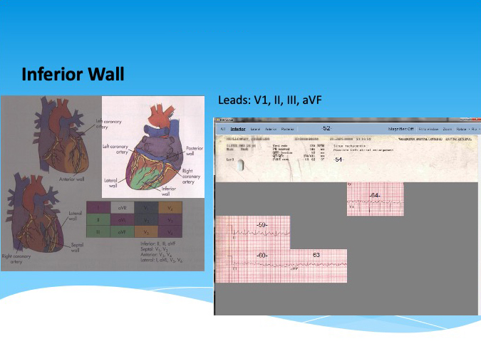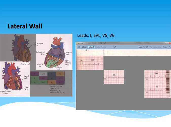 Groups ECG leads together to represent the anterior wall, lateral wall, inferior wall, and posterior wall of the heart of the patient