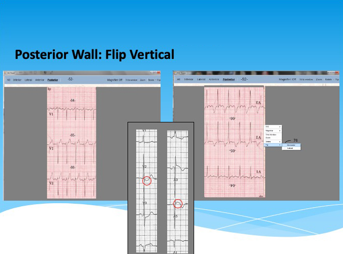 Detecting ST elevation can be challenging when the ECG is oriented in a normal, right-side-up fashion. The MI Viewer can rotate the ECG 90 or 180 degrees, allowing the eye to identify an ST elevation in a horizontal or inverted orientation more easily than in a standard presentation. Additionally, the MI Viewer can overlay previous ECG tracings and allows for scrolling through previous and current ECGs simultaneously, enabling providers to compare readings for a more accurate and comprehensive picture of a patient’s heart condition.